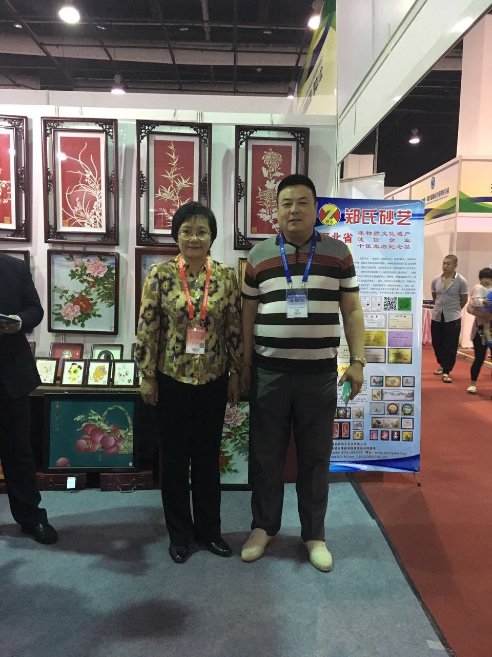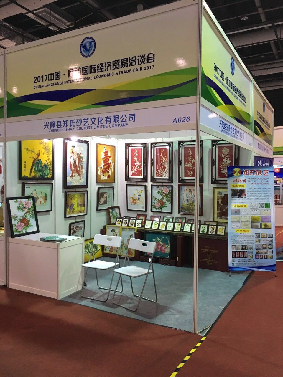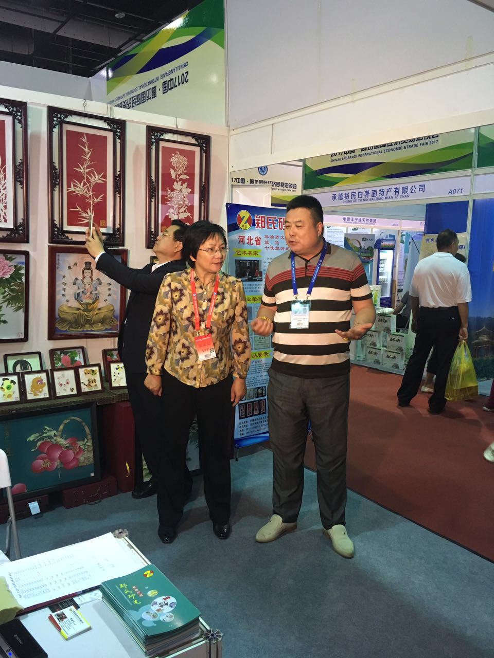 本月18日,我公司參加由河北省商務廳組織的“5.18國際經濟貿易洽談會”。展會為期4天,由多個省份和包括外商在內的近千家企業(yè)參與了本次會展。19日下午,承德市市長常麗虹、副市長蘇鐵成、縣商務局局長徐勝濤、副局長張學敏前來視察工作,并參觀了我公司的砂畫作品,對我公司純手工制作的砂畫表示了肯定,并對我公司今后的發(fā)展提出了寶貴建議。