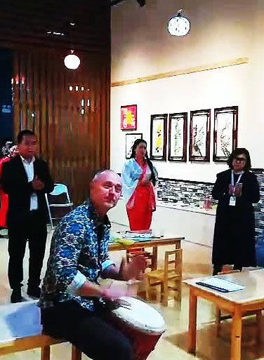 2018年10月28日,德國文學教授、非洲鼓音樂大師費蘭特應邀到訪石家莊冀臺聯(lián)青年文化創(chuàng)業(yè)園鄭氏砂藝非遺文化傳承教育基地。期間,費蘭特現(xiàn)場表演非洲鼓。