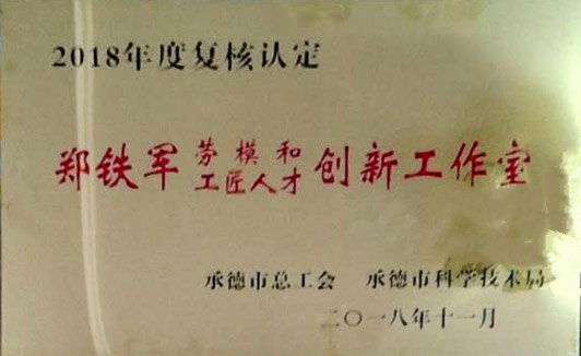 經(jīng)承德市總工會、承德市科學技術局2018年復核認定興隆縣鄭氏砂藝文化有限公司“鄭鐵軍勞模和工匠人才創(chuàng)新工作室
