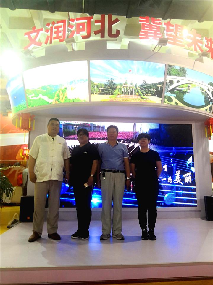 圖為鄭總和興隆縣旅游和廣電局書(shū)記閆海濤(右二)局長(zhǎng)張曉莎(右一)和興隆縣文聯(lián)主席王久霞(左二)在文博會(huì)上合影留念