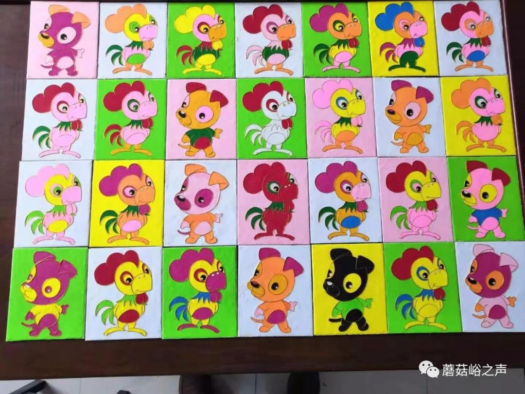 群眾零成本制作,砂藝公司負責(zé)免費提供原材料,政府給予公司一定帶貧獎補資金,每個13*16cm的砂畫半成品,回收價格最低15元,如果每名群眾每天制作兩個合格半成品,每月獲得收益900元,同時公司給予獎補底薪600元。實踐來看,一名婦女在不耽誤家務(wù)和農(nóng)活的情況下,每天可利用閑暇時間制作2——4個。正值暑假,很多放假在家的中小學(xué)生也積極加入到參訓(xùn)隊伍;一些身體弱但手指靈活的男人、老人也主動來參加培訓(xùn)。二道嶺村低保戶,也是十里八村群眾口里的“老賴戶”、纏訪戶大亮、三亮也來參訓(xùn)了。大家共同學(xué)習(xí)、互相幫助,有人擅長負責(zé)描摹,有人擅長粘絲,參訓(xùn)群眾在相互交流和幫助中提升了技藝,也增進了感情,一個培訓(xùn)項目,不但讓大山拓寬了增收渠道,也促進了和諧穩(wěn)定。