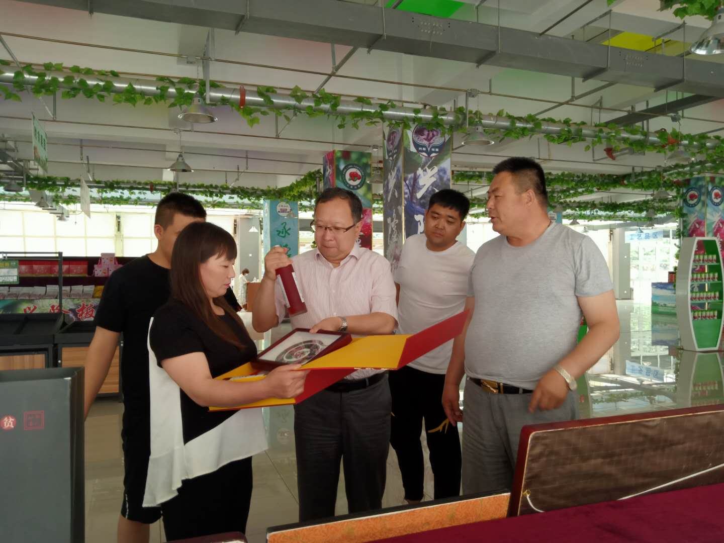 2020年6月22日,興隆縣縣委書記薛青松親臨興隆縣農(nóng)產(chǎn)品展示展銷中心視察指導(dǎo)工作,期間在董事長鄭鐵軍的陪同下參觀了鄭氏砂藝展出的扶貧系列產(chǎn)品,薛青松書記對2019年鄭氏砂藝的扶貧工作進行了深入了解,聽取了董事長鄭鐵軍的扶貧情況匯報,并對鄭氏砂藝非遺文化扶貧工作和扶貧產(chǎn)品給予了高度評價。薛青松書記指出,目前脫貧攻堅是主要任務(wù),要發(fā)揮文化企業(yè)特點,不斷學(xué)習(xí),尋求創(chuàng)新,把“非遺+扶貧+旅游”的新觀念、新思路、新方法投入實踐,促進文旅融合,提高縣文化產(chǎn)業(yè)的可持續(xù)發(fā)展。這樣既可以帶動貧困戶脫貧致富,又能推動非物質(zhì)文化遺產(chǎn)的傳承與發(fā)展。