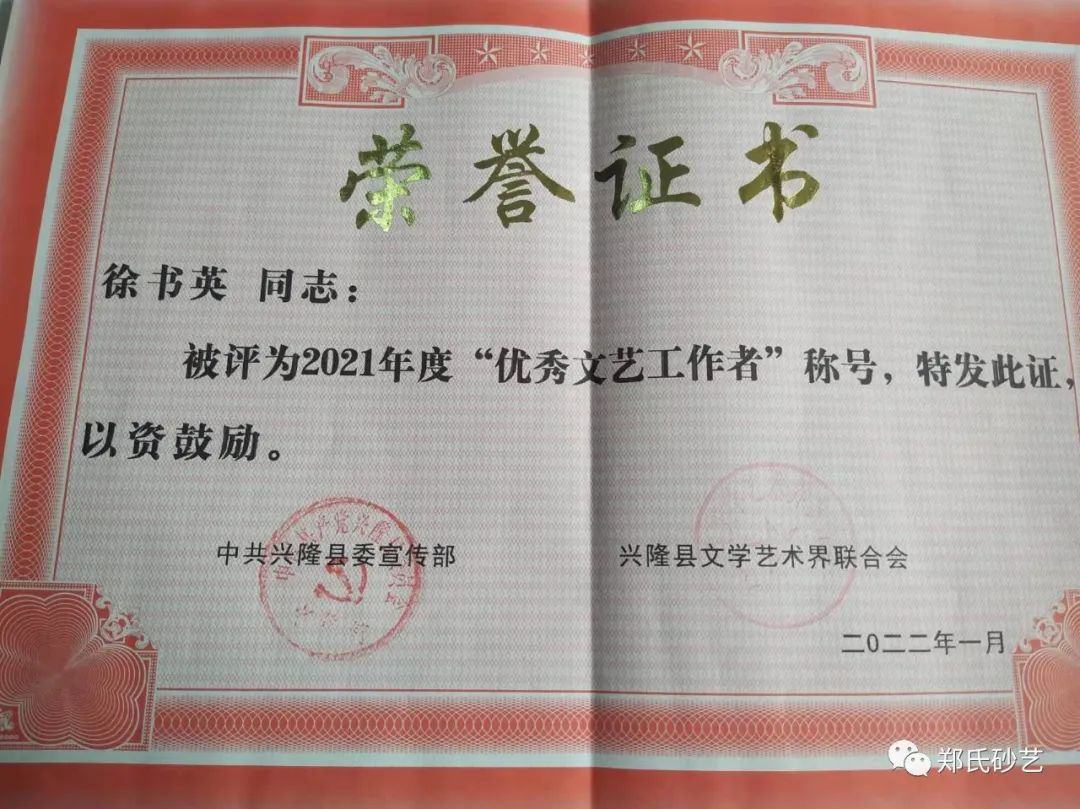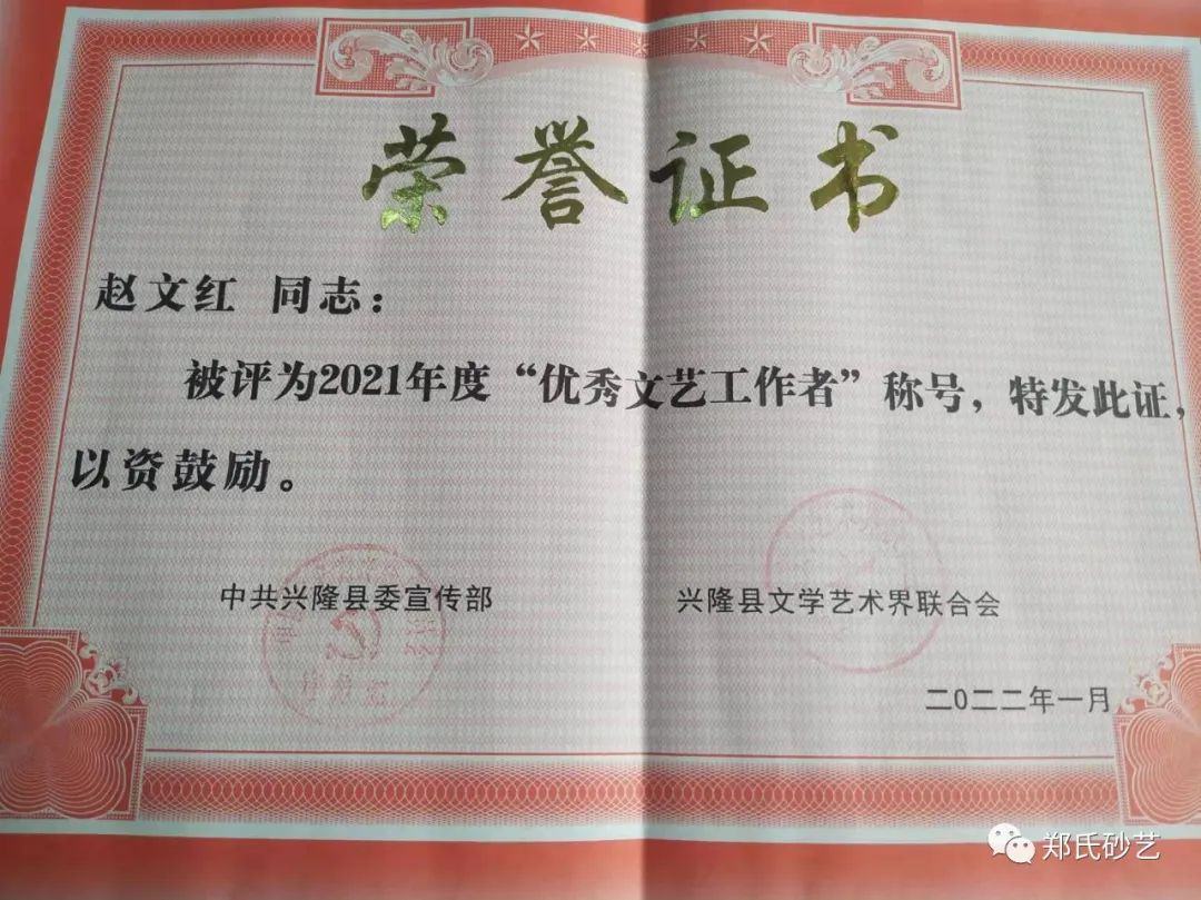 近日,縣委宣傳部、縣文聯(lián)發(fā)表了《關(guān)于表彰2021年度優(yōu)秀文藝家協(xié)會(huì)、優(yōu)秀村級(jí)文聯(lián)、優(yōu)秀企業(yè)文聯(lián)、優(yōu)秀文藝工作者的決定》,文中指出“2021年,在縣委、縣政政府的堅(jiān)強(qiáng)領(lǐng)導(dǎo)下,在市文聯(lián)的直接指導(dǎo)下,全縣廣大文藝工作者,深入學(xué)習(xí)貫徹黨的十九大和習(xí)近平文藝座談會(huì)上的講話精神,在‘鄉(xiāng)村振興黨旗紅·文藝創(chuàng)新樹先鋒’和‘文藝名村’建設(shè)實(shí)踐活動(dòng)中,辛勤耕耘,積極創(chuàng)作,服務(wù)人民,為繁榮全縣文藝事業(yè)做出了積極貢獻(xiàn),涌現(xiàn)出了一大批表現(xiàn)突出、成績優(yōu)異的文藝工作者。”在此次通報(bào)表彰中,鄭氏砂藝董事長鄭鐵軍、徐書英、王鳳艷、趙文紅、張國新、王建寶、張玉紅、張秀榮、王婷共9人被縣委宣傳部和縣文聯(lián)授予2021年度“優(yōu)秀文藝工作者”稱號(hào)。企業(yè)將繼續(xù)開拓創(chuàng)新,潛心創(chuàng)作,努力發(fā)掘出更多文藝人才,壯大鄭氏砂藝藝術(shù)研究所,創(chuàng)作出更多文藝精品,為推進(jìn)新時(shí)代興隆縣文藝事業(yè)繁榮發(fā)展作出新的更大貢獻(xiàn)。