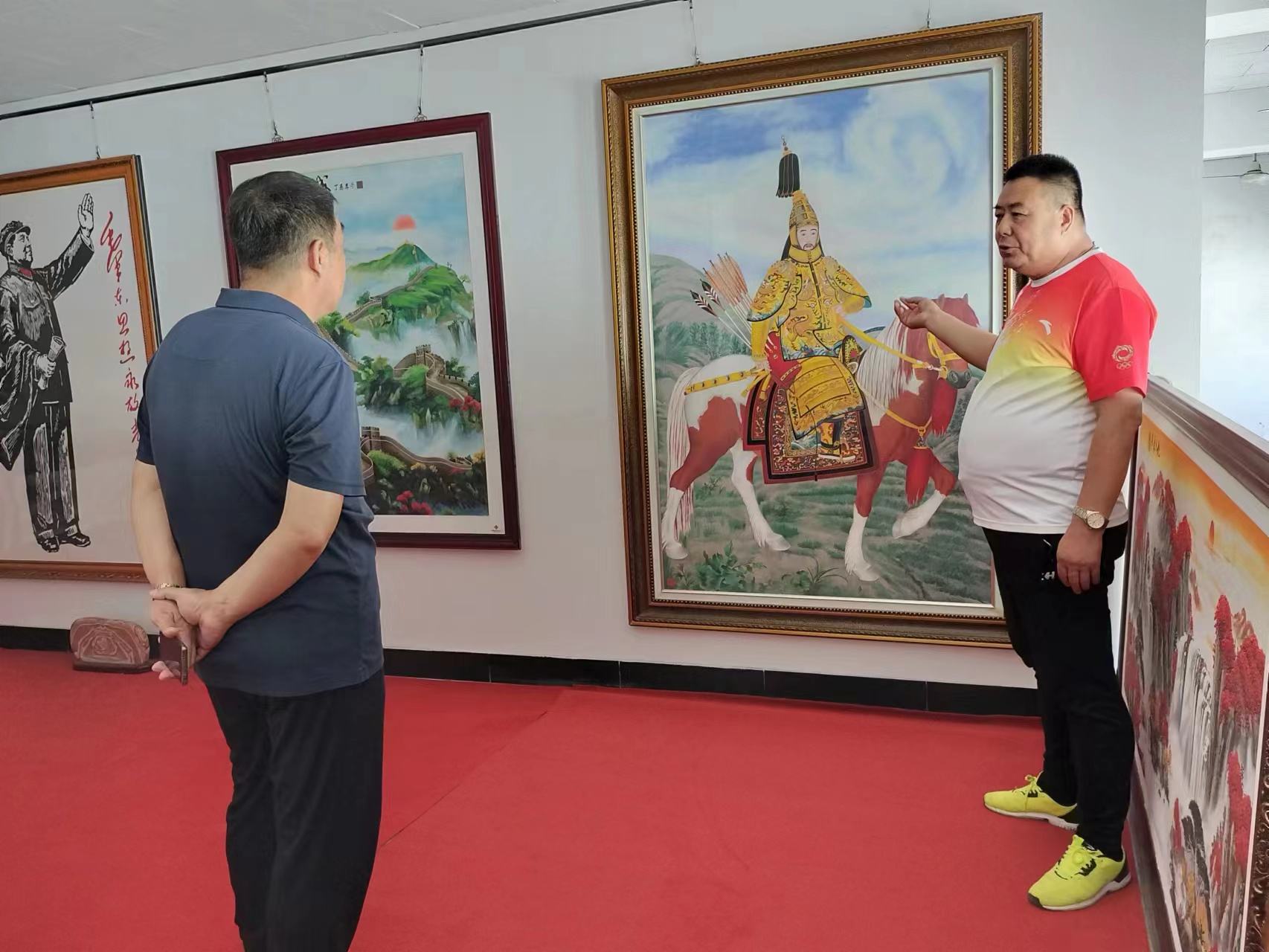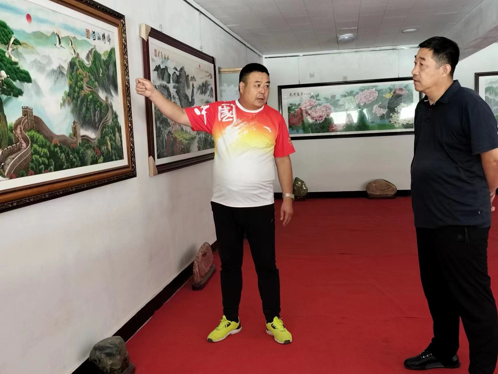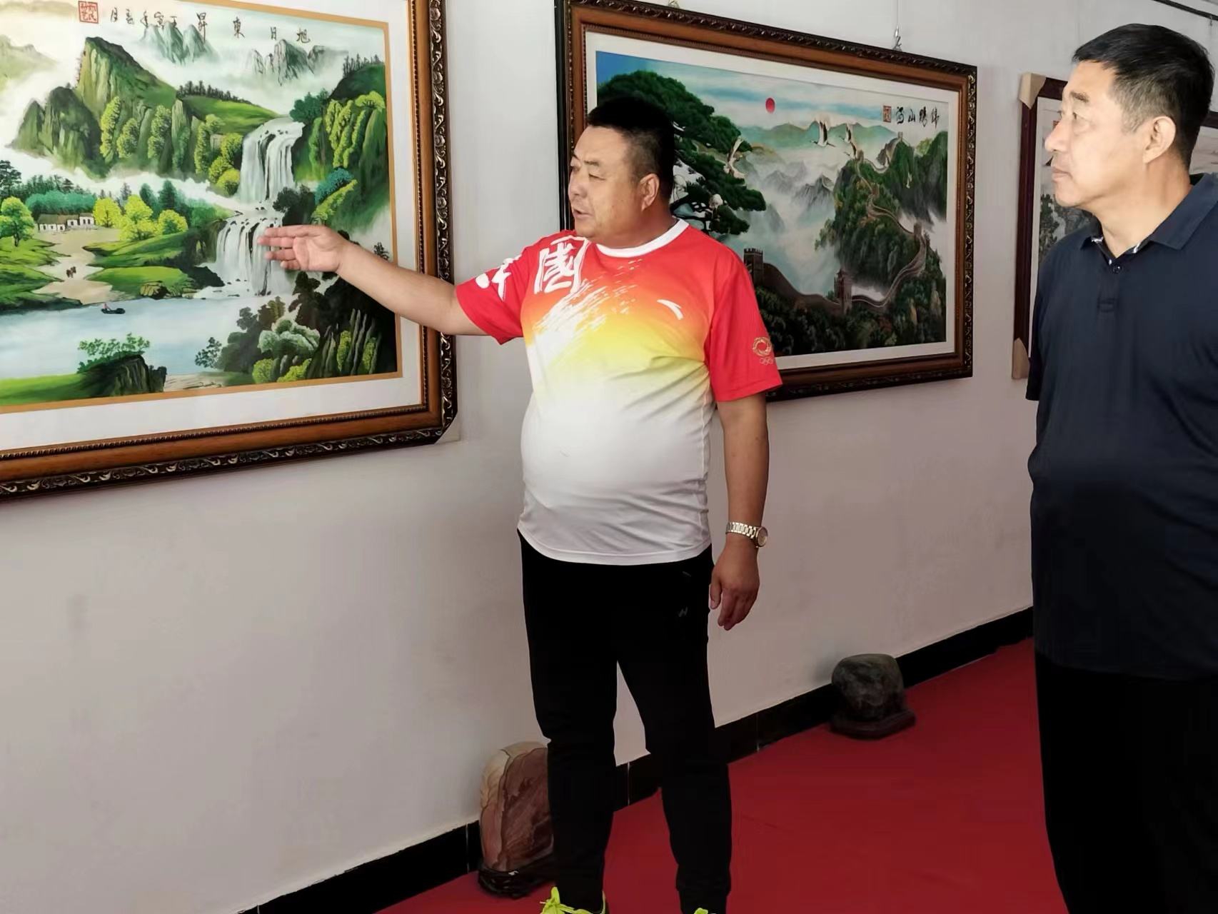 王智慧經理等人在鄭總的陪同下參觀了砂畫制作車間和鄭氏砂藝非遺文化展館,參觀過程中,鄭總對鄭氏砂藝(畫)的發(fā)展歷程、制作流程、企業(yè)榮譽和發(fā)展前景做了簡單介紹。同時鄭總就企業(yè)代表性砂畫及其制作時采用的材料及背后的歷史文化進行了簡略描述。