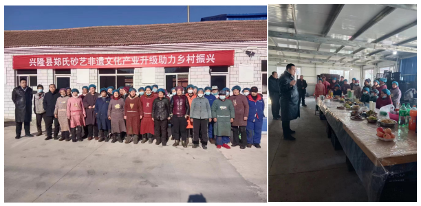2021年11月,企業(yè)選址興隆縣李家營下臺子村原小學成立興隆縣鐵金研學基地,并結合當?shù)剞r村農民的農業(yè)種植情況,組織當?shù)?03戶村民自愿聯(lián)合成立了農民專業(yè)合作社,建立了鄭氏砂藝非遺文化產業(yè)升級助力鄉(xiāng)村振興就業(yè)工坊。在企業(yè)的引領下合作社展開了農產品收購和初加工業(yè)務,此舉不但解決了農民的就業(yè)問題,也解決了農產品的銷售問題,切實的帶動了當?shù)厝罕娋徒蜆I(yè)、增收致富。