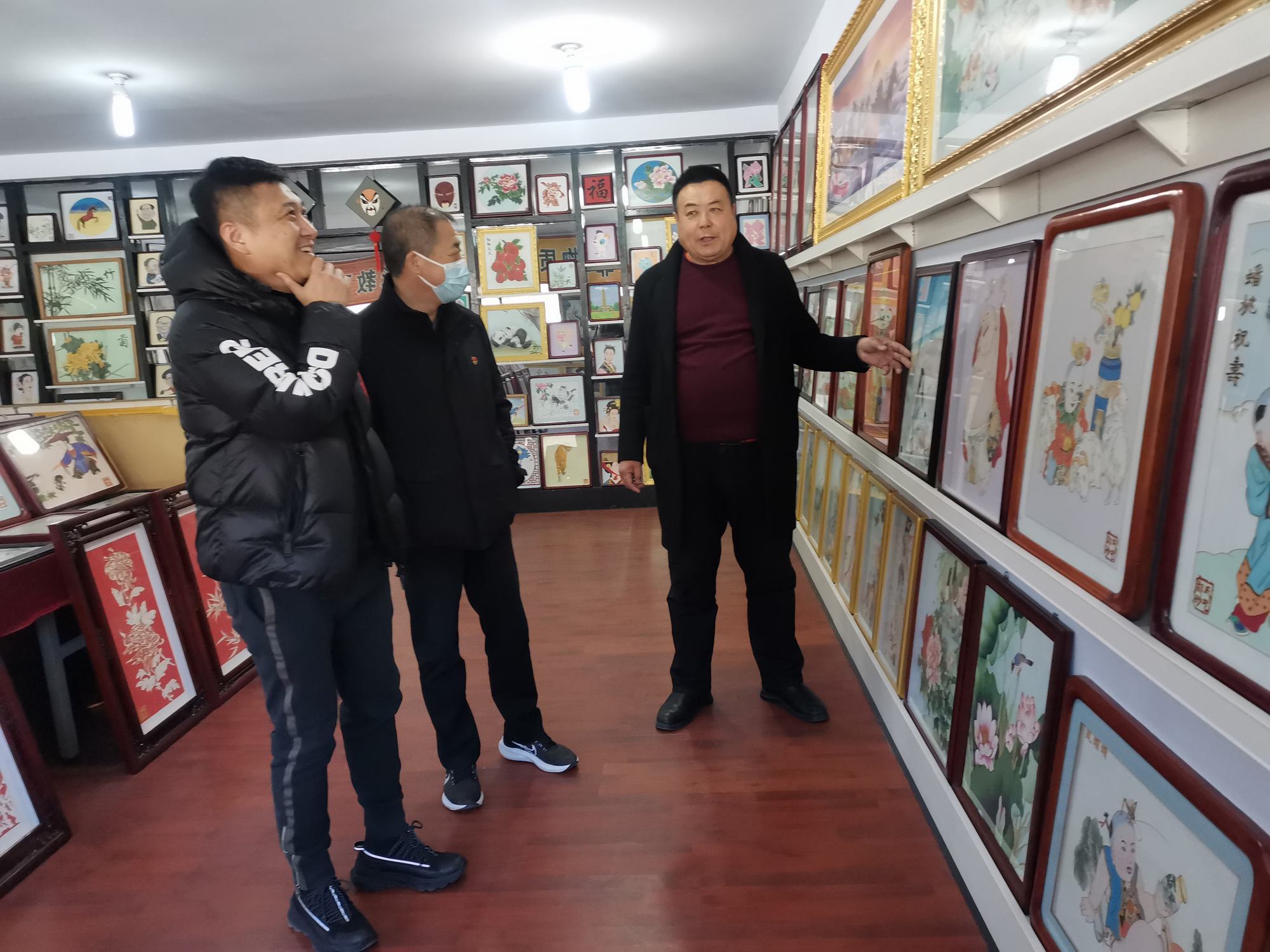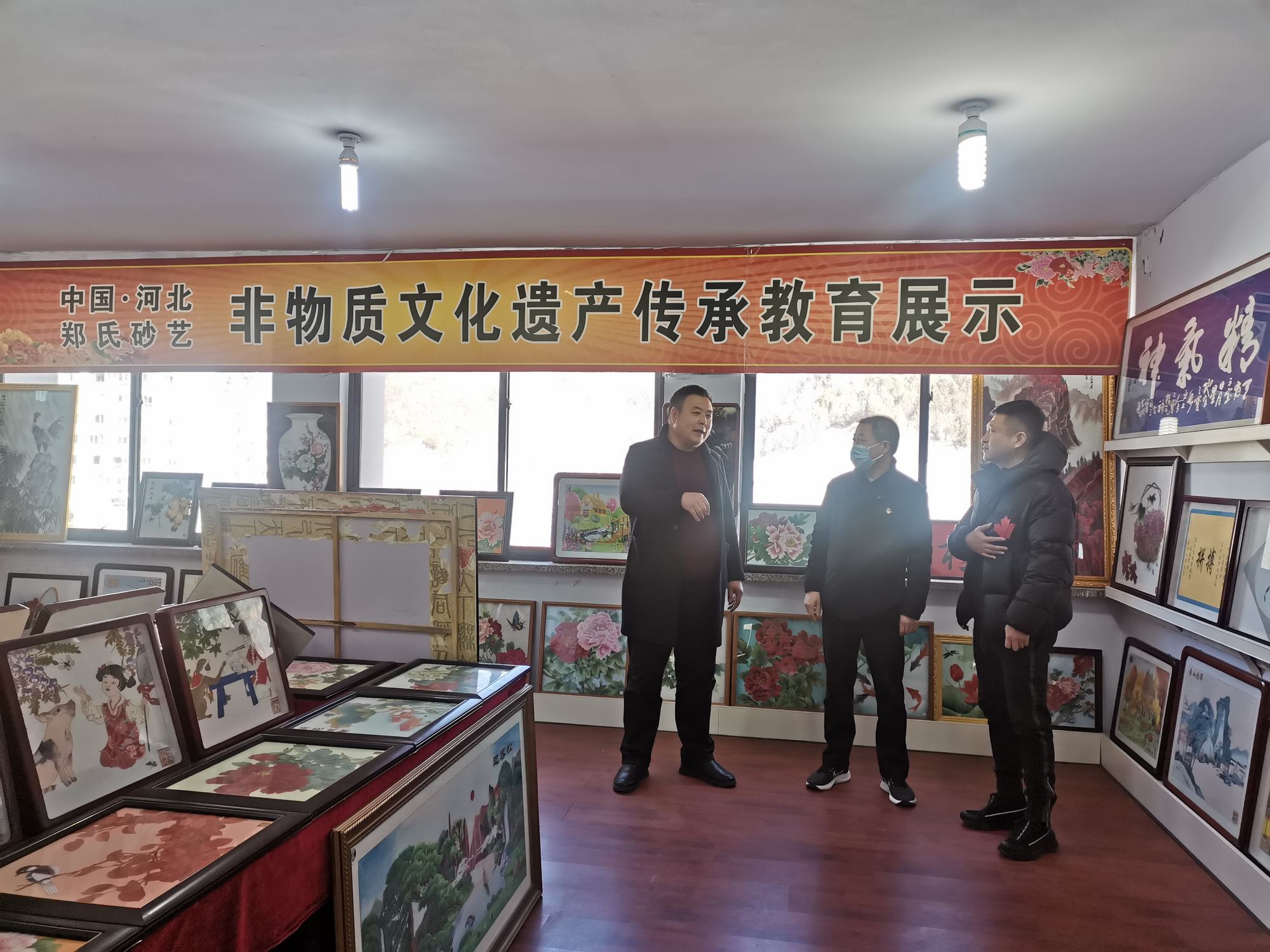 李曉軍主任和趙楠主任在鄭氏砂藝董事長鄭鐵軍的陪同下,來到了鄭氏砂藝非遺文化展廳,參觀了領導關懷展示墻、榮譽墻、鄭氏砂藝金銀絲彩砂畫和旅游伴手禮等,參觀期間,領導詢問了企業(yè)近年來運營銷售等情況,聆聽了鄭總講述企業(yè)近年來取得的成績和目前遇到的困難,李曉軍主任對企業(yè)多年來取得的成績給予肯定,對企業(yè)目前面臨的困難表示理解,并指出2023年隨著疫情政策放開和《中國式現(xiàn)代化興隆場景文化強縣工作方案》的出臺等,都是我縣文化產(chǎn)業(yè)發(fā)展的利好。鄭氏砂藝是極具興隆地區(qū)特色的文化產(chǎn)業(yè),要抓住機遇、勇于創(chuàng)新,把企業(yè)做大做強,加強企業(yè)非遺文化宣傳力度,將鄭氏砂藝(畫)做成具有興隆縣標志性的文化產(chǎn)品,為推動文化興隆建設做出貢獻。