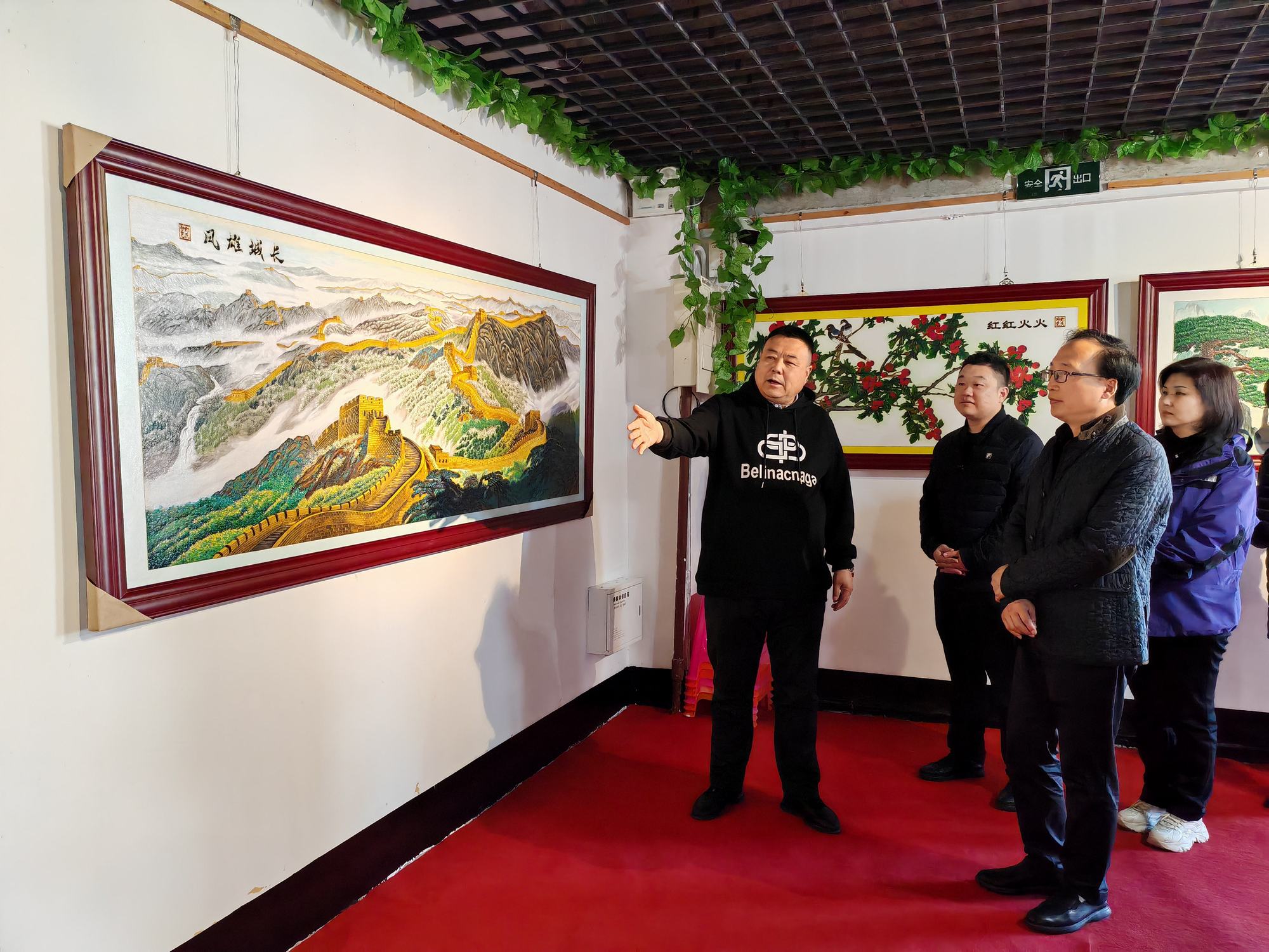 集乾釗主任一行在鄭鐵軍董事長(zhǎng)的陪同下參觀(guān)了鄭氏砂藝非遺展館,觀(guān)看了鄭氏砂藝創(chuàng)作的各類(lèi)非遺砂畫(huà)作品,考察團(tuán)領(lǐng)導(dǎo)在長(zhǎng)城砂畫(huà)系列前駐足欣賞,對(duì)栩栩如生的長(zhǎng)城砂畫(huà)作品給予了高度贊譽(yù)。期間董事長(zhǎng)鄭鐵軍對(duì)近年來(lái)鄭氏砂藝非遺文化的發(fā)展情況進(jìn)行了簡(jiǎn)單介紹。集乾釗主任對(duì)鄭氏砂藝非遺文化的傳承和發(fā)展表示了充分肯定,并對(duì)鄭氏砂藝的傳統(tǒng)手工技藝給予高度評(píng)價(jià)。