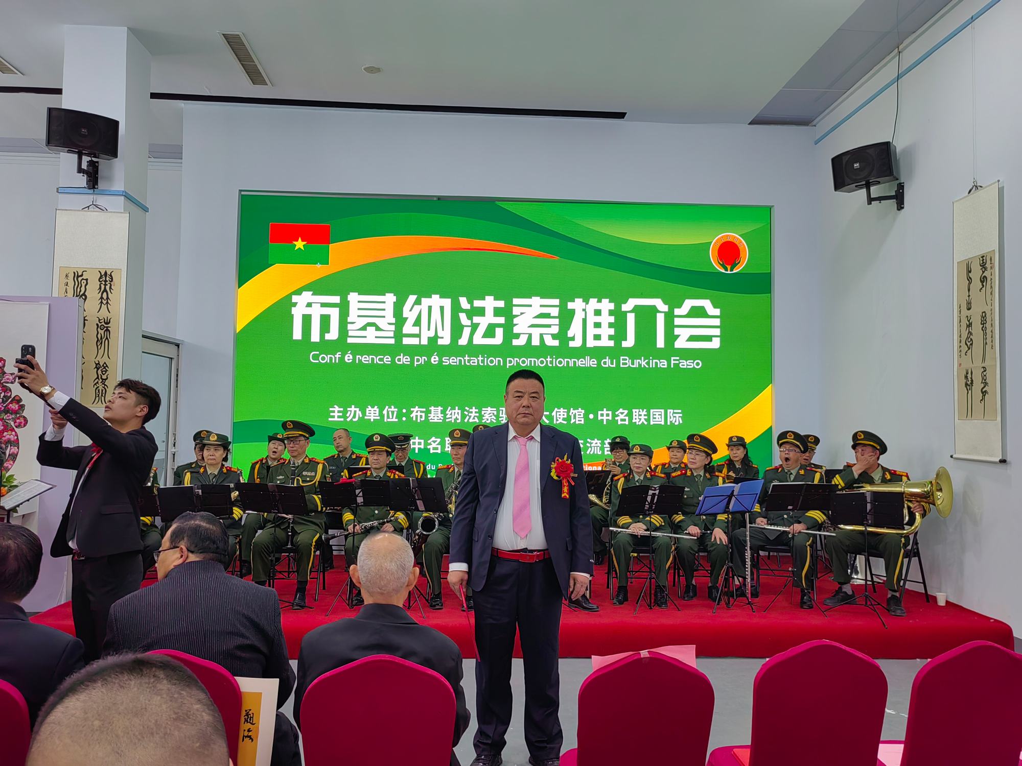 2023年4月12日,興隆縣鄭氏砂藝文化有限公司執(zhí)行董事長鄭鐵軍參加由布基納法索駐華大使館.中名聯(lián)書畫培訓(xùn)國際交流部主辦的“布基納法索國家推介會”和“中名聯(lián)191期經(jīng)濟(jì)與藝術(shù)交流會”。會上,布基納法索共和國駐華大使團(tuán)、商務(wù)代表團(tuán)一行對鄭鐵軍的砂畫作品高度贊賞,并現(xiàn)場簽訂了訂購協(xié)議,頒發(fā)了收藏證書,授予鄭鐵軍“中非文化交流使者”榮譽(yù)稱號。