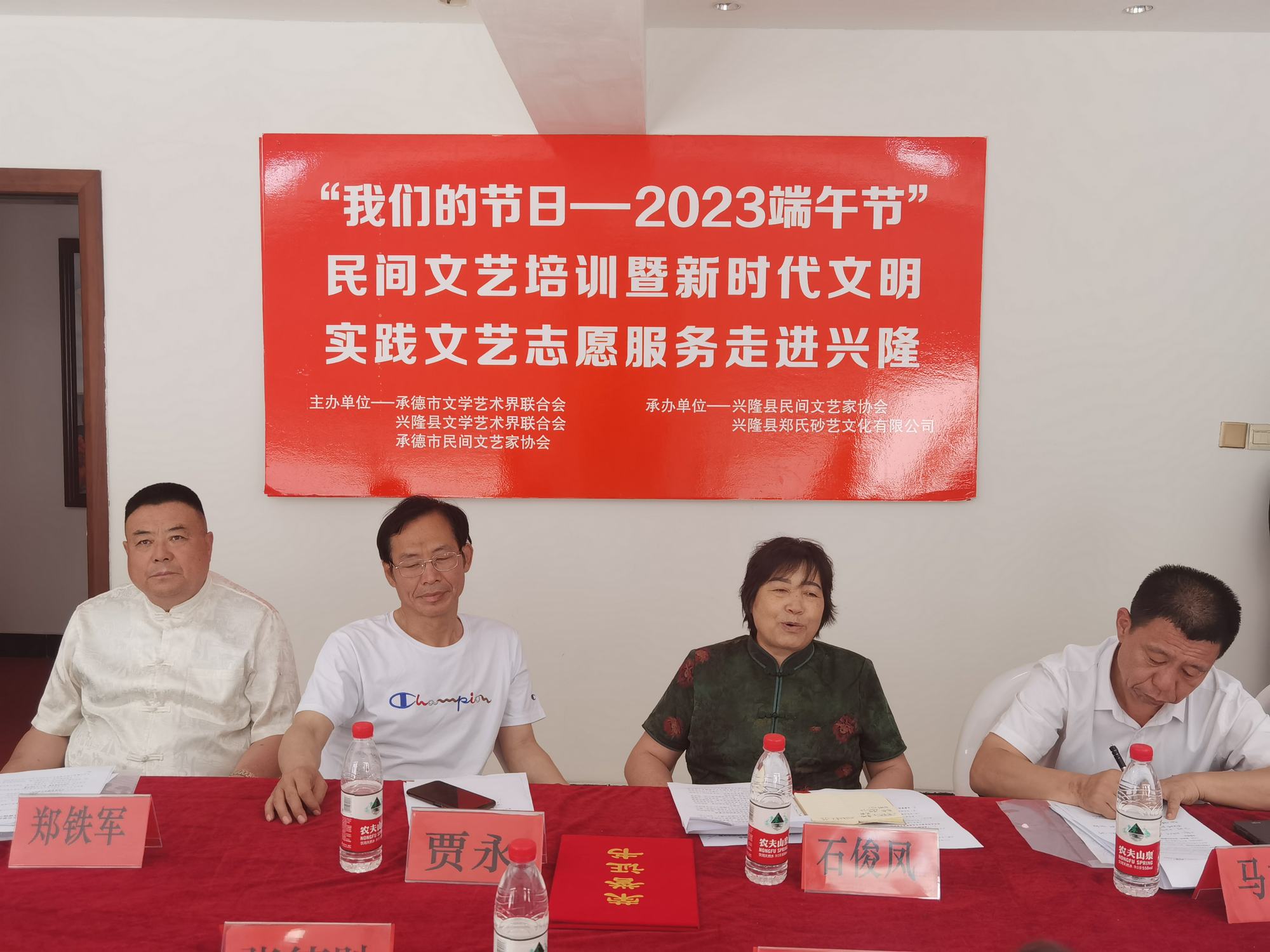 此次活動(dòng)由承德市文學(xué)藝術(shù)界聯(lián)合會(huì)、興隆縣文學(xué)藝術(shù)界聯(lián)合會(huì)、承德市民間文藝家協(xié)會(huì)主辦,興隆縣民間文藝家協(xié)會(huì)、興隆縣鄭氏砂藝文化有限公司承辦。河北省民協(xié)副主席、承德市文聯(lián)副主席、承德市民協(xié)主席石俊鳳,興隆縣文聯(lián)主席賈永,承德市民協(xié)秘書長(zhǎng)馬立國(guó),承德市民協(xié)副秘書長(zhǎng)龐麗君,承德市民協(xié)副主席、興隆縣民協(xié)主席鄭鐵軍,以及承德市各區(qū)縣民協(xié)領(lǐng)導(dǎo)和文藝家們一起參加了活動(dòng)。