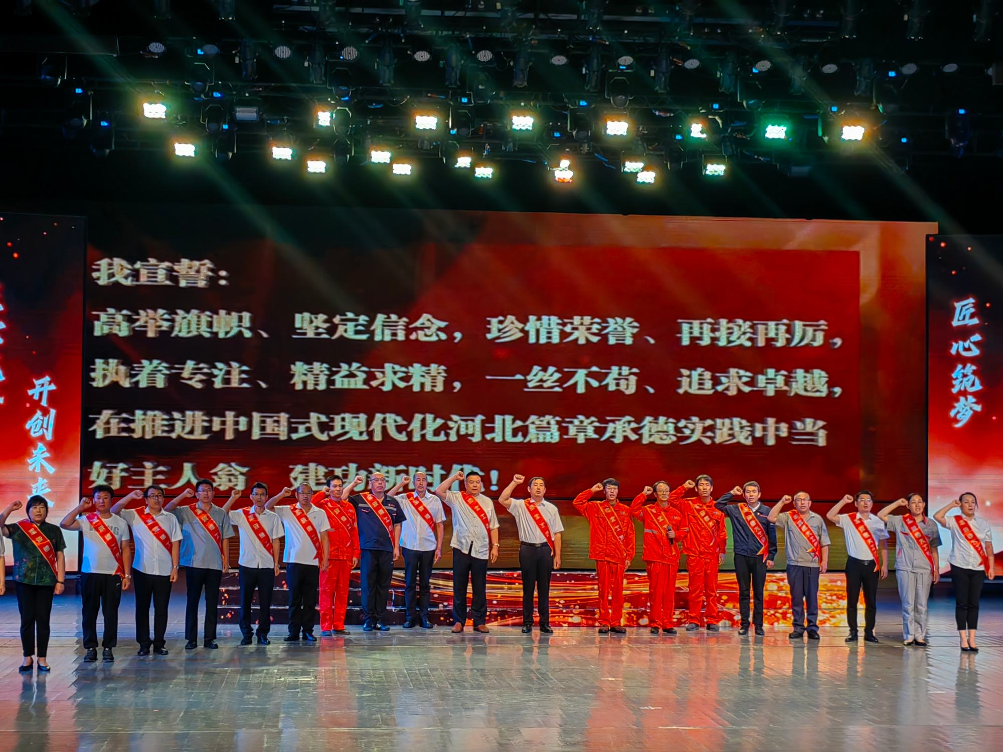 7月6日上午,2023年河北工匠、承德大工匠、承德工匠年度人物發(fā)布儀式在承德大劇院舉行,承德市委副書記蔣文冬,承德市委常委、宣傳部部長趙青英,承德市人大常委會副主任郭士剛,承德市人民政府副市長甄毓敏等相關(guān)領(lǐng)導(dǎo)出席了此次活動,并與工匠年度人物榮譽獲得者進行合影留念。鄭氏砂藝(畫)第五代非遺傳承人鄭鐵軍榮獲“2023年河北工匠年度人物”榮譽稱號。