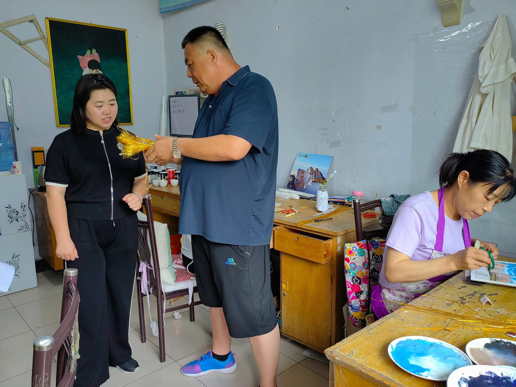 溫偉副部長一行在鄭氏砂藝執(zhí)行董事長鄭鐵軍的陪同下,參觀了鄭氏砂藝非遺文化展館,在生產(chǎn)車間觀看了鄭氏砂藝(畫)的制作手法和制作原料。期間,鄭鐵軍董事長就鄭氏砂藝的發(fā)展歷程、企業(yè)文化和企業(yè)發(fā)展方向等多方面進(jìn)行了詳細(xì)地介紹,溫部長對鄭氏砂藝的發(fā)展和獨具特色的砂畫藝術(shù)給予了高度評價,并就鄭氏砂藝今后發(fā)展方向提出了合理建議,她指出鄭氏砂藝在今后的發(fā)展中要充分發(fā)揮自身非遺特色,將非遺活動和中國傳統(tǒng)節(jié)日相結(jié)合,開展相應(yīng)活動,努力將鄭氏砂藝非遺文化融入廣大社會群眾中去,為建設(shè)“文化興隆”作出應(yīng)有的貢獻(xiàn)。