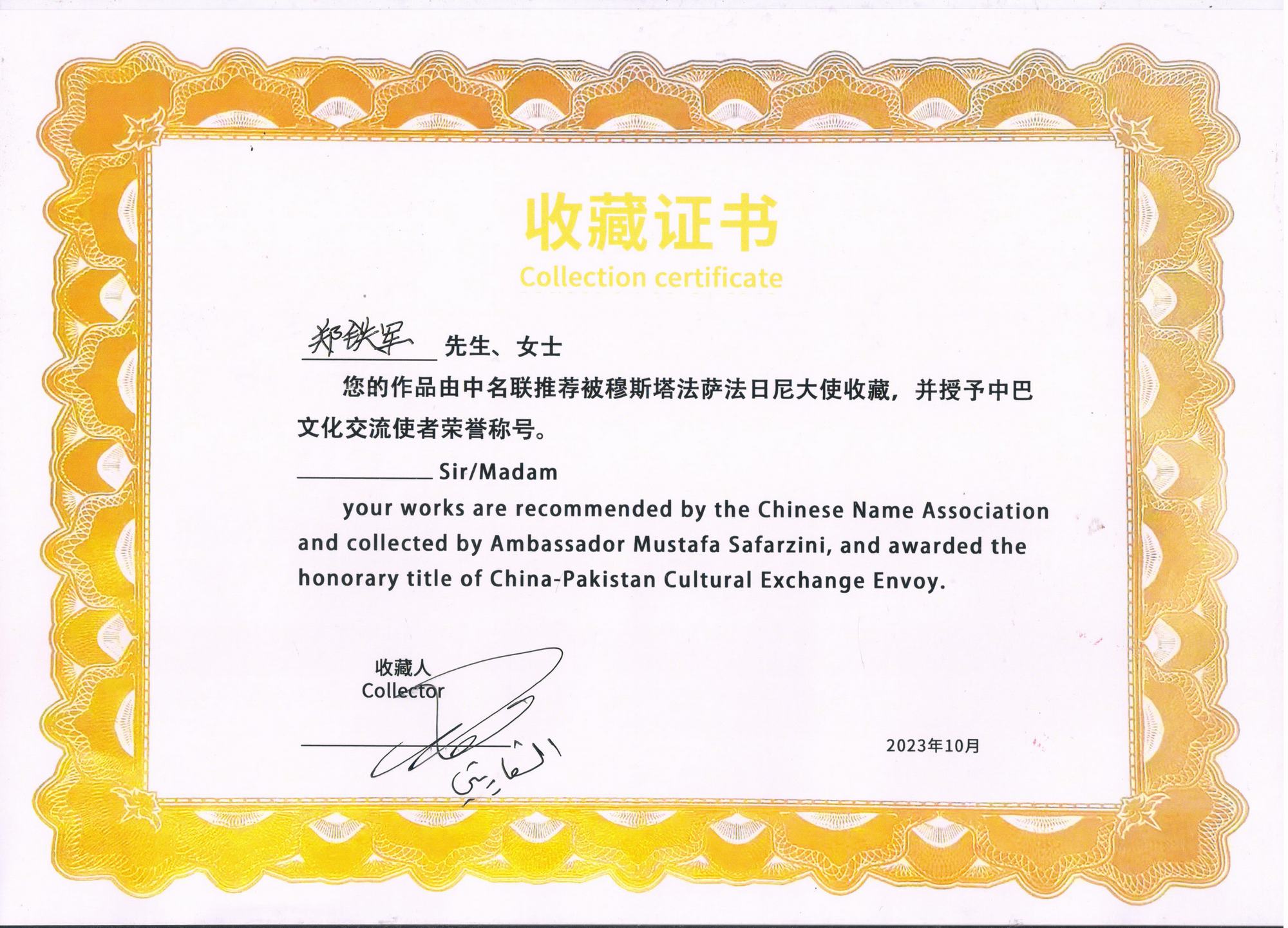 2023年10月29日,應(yīng)中名聯(lián)邀請,并通過中名聯(lián)國際平臺(tái),鄭氏砂藝執(zhí)行董事長鄭鐵軍同巴勒斯坦駐華大使穆斯塔法·薩法日尼展開了真摯而又熱情的交流,大使表示十分尊重和熱愛中國的傳統(tǒng)文化,尤其是高度贊賞了鄭氏砂藝(畫)在藝術(shù)方面達(dá)到的深厚造詣,并將鄭鐵軍砂畫作品《牡丹》選作國禮正式收藏,同時(shí)授予鄭鐵軍為中巴文化交流使者榮譽(yù)稱號。