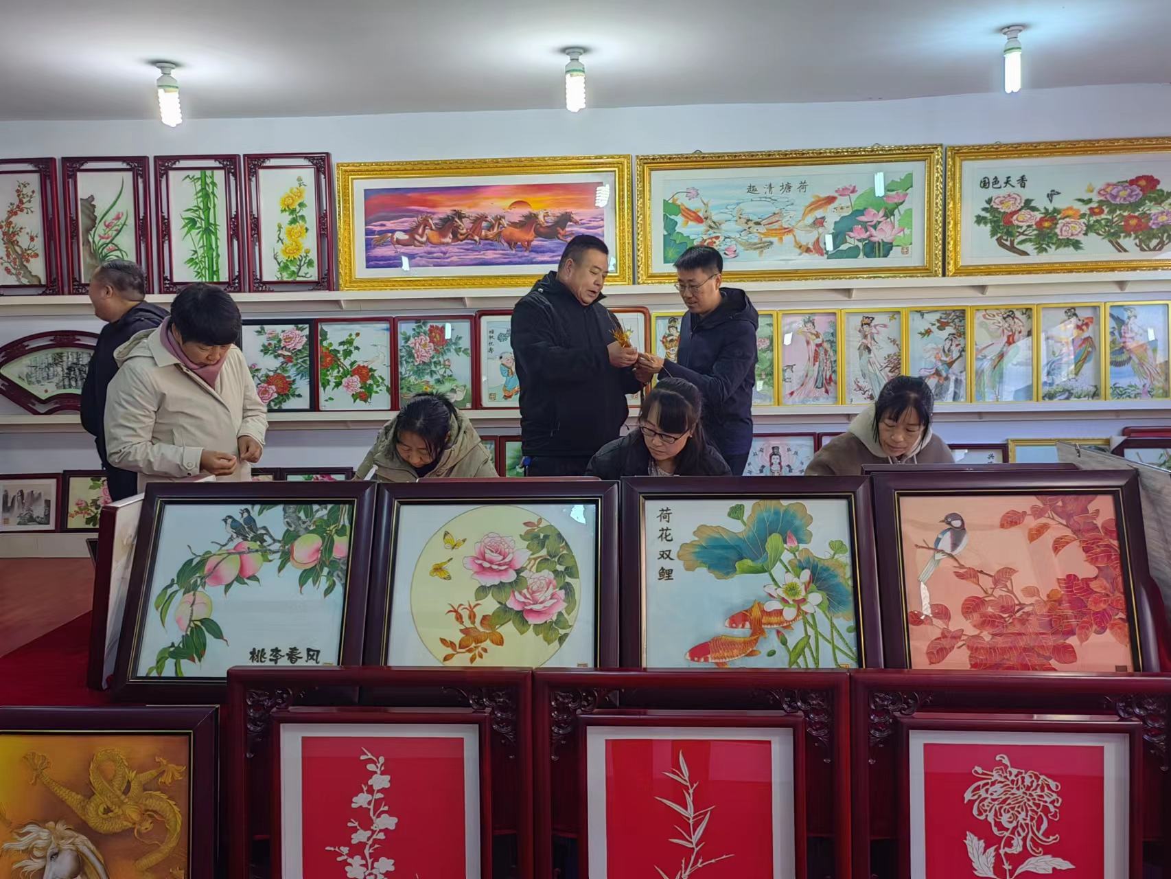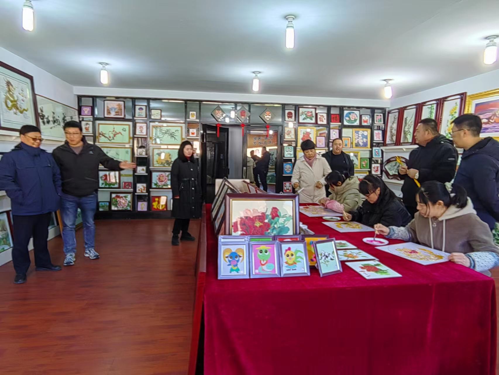 丁宇超副部長一行在鄭氏砂藝董事長鄭鐵軍的陪同下,逐一參觀了鄭氏砂藝展覽館和文化名家工作室,觀看了技師的砂畫制作手法,以及砂畫主要材質(zhì)和制作步驟,對(duì)鄭氏砂藝傳統(tǒng)技藝頗為驚訝和感嘆,贊嘆一幅幅栩栩如生的砂畫作品,就是我們的畫師用一雙雙纖纖玉手這樣一點(diǎn)一點(diǎn)地制作完成的,簡直是妙手回春,點(diǎn)砂成金。