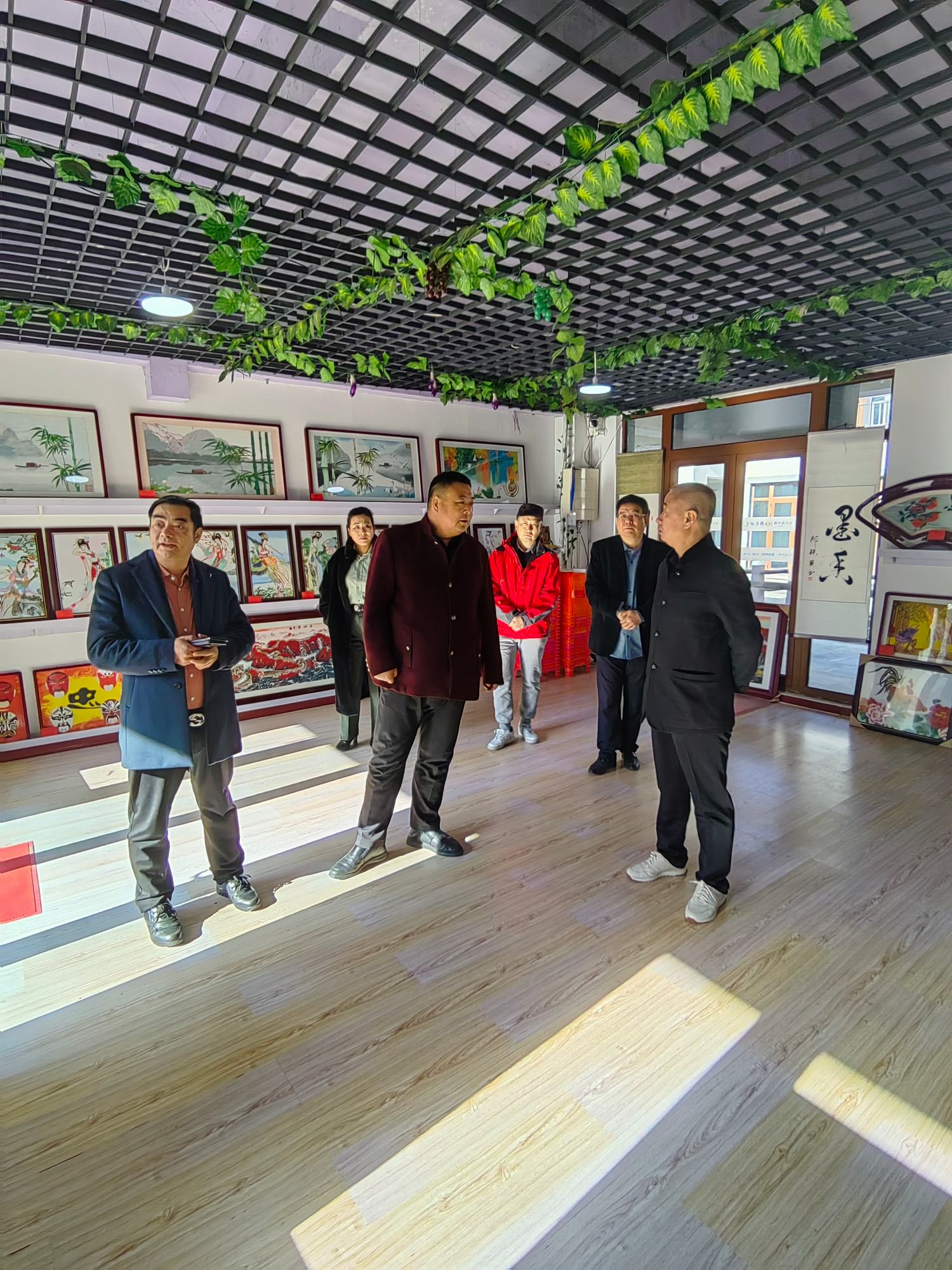 考察團(tuán)和各位領(lǐng)導(dǎo)在鄭鐵軍董事長(zhǎng)的陪同下,先后參觀了塞外江南水鎮(zhèn)的鄭氏砂藝非遺博物館、后苗圃鄭氏砂藝非遺文化展覽館和鄭氏砂藝創(chuàng)新工作室,鄭鐵軍董事長(zhǎng)詳細(xì)介紹了鄭氏砂藝近年來(lái)取得的各項(xiàng)成果,并簡(jiǎn)述了企業(yè)未來(lái)的發(fā)展規(guī)劃。戴本領(lǐng)總裁對(duì)鄭氏砂藝(畫(huà))的技藝和發(fā)展給予高度肯定,他說(shuō):“鄭鐵軍先生是中名聯(lián)國(guó)際簽約國(guó)禮藝術(shù)家,鄭老師的作品在眾多大使館外交官群體中享有崇高聲譽(yù),在國(guó)際中享有很高的知名度,深受外國(guó)友人喜愛(ài),今后中名聯(lián)國(guó)際將通過(guò)‘一帶一路’友好國(guó)家貿(mào)易拓展,把鄭氏砂藝(畫(huà))這樣的中華優(yōu)秀傳統(tǒng)文化推向世界。”