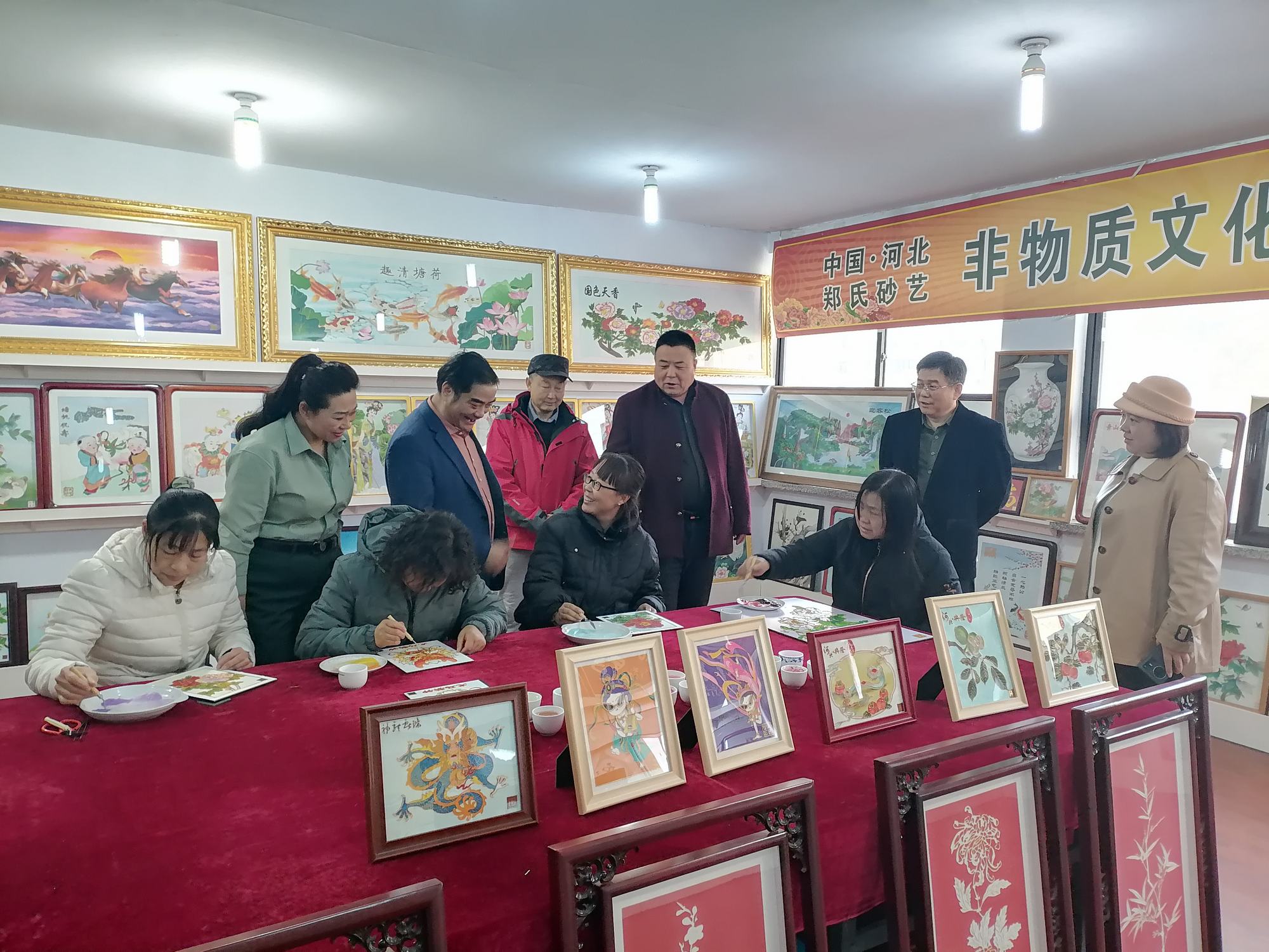 2024年3月12日至13日,中名聯(lián)國(guó)際戴本領(lǐng)總裁一行蒞臨興隆縣鄭氏砂藝文化有限公司,就鄭氏砂藝發(fā)展歷程、發(fā)展模式和發(fā)展規(guī)劃進(jìn)行考察指導(dǎo),一同前來(lái)的有原非遺司秘書(shū)趙萍,邯鄲市華冶工貿(mào)有限公司黨委書(shū)記、董事長(zhǎng)、北京華納中創(chuàng)文化發(fā)展有限公司執(zhí)行董事張書(shū)明,中國(guó)國(guó)務(wù)外事國(guó)賓禮特供藝術(shù)家、中國(guó)女畫(huà)家協(xié)會(huì)會(huì)員時(shí)愛(ài)華。興隆縣人大常委會(huì)黨組副書(shū)記、副主任高春青,興隆縣委宣傳部副部長(zhǎng)、文明辦主任溫偉,清華大學(xué)文化與旅游產(chǎn)品設(shè)計(jì)研發(fā)中心原總監(jiān)尹建民教授,鄭氏砂藝董事長(zhǎng)鄭鐵軍等陪同參觀。