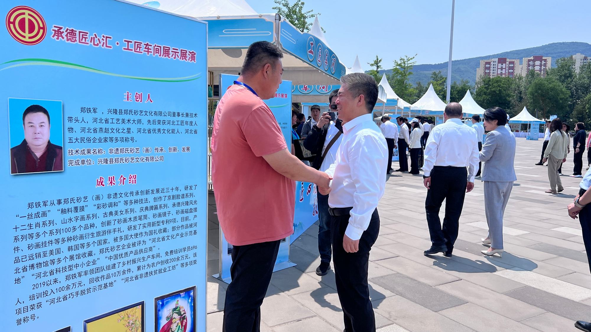 為向全國職工展示我省、我市工匠代表典型創(chuàng)新成果、精湛的操作技能,非遺傳承以及智慧文創(chuàng)的文化魅力,同時在奧體中心還舉辦了“承德匠心匯——工匠•市集”展示展演活動,鄭氏砂藝(畫)等二十余個承德非遺文化項目的勞模工匠代表匯聚一堂,向全國職工和當(dāng)?shù)厥忻裾故玖俗陨淼母叱妓?,展現(xiàn)了承德工匠們堅守執(zhí)著、精益求精、專業(yè)專注、追求極致和一絲不茍的工匠精神。
