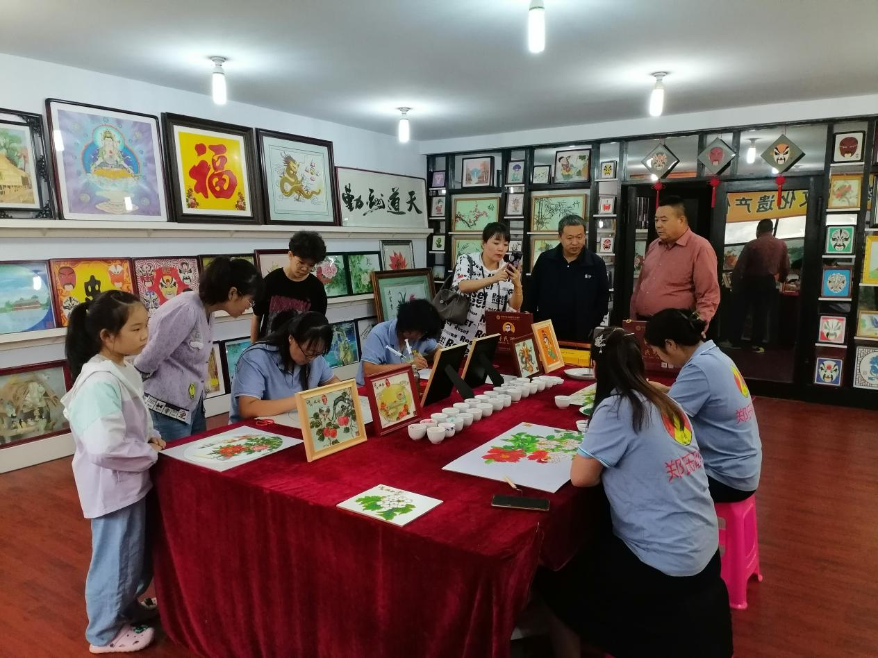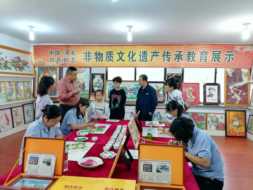 隨后,一行人來到了鄭氏砂藝的創(chuàng)新工作室,近距離觀看了砂藝作品的制作過程。拓圖、粘絲、點藍、裝裱等十四道工序,每一步都充滿了匠人的心血與智慧。師生們紛紛表示,通過目睹砂藝作品的誕生過程,他們對砂藝文化有了更加深刻地理解和認識。