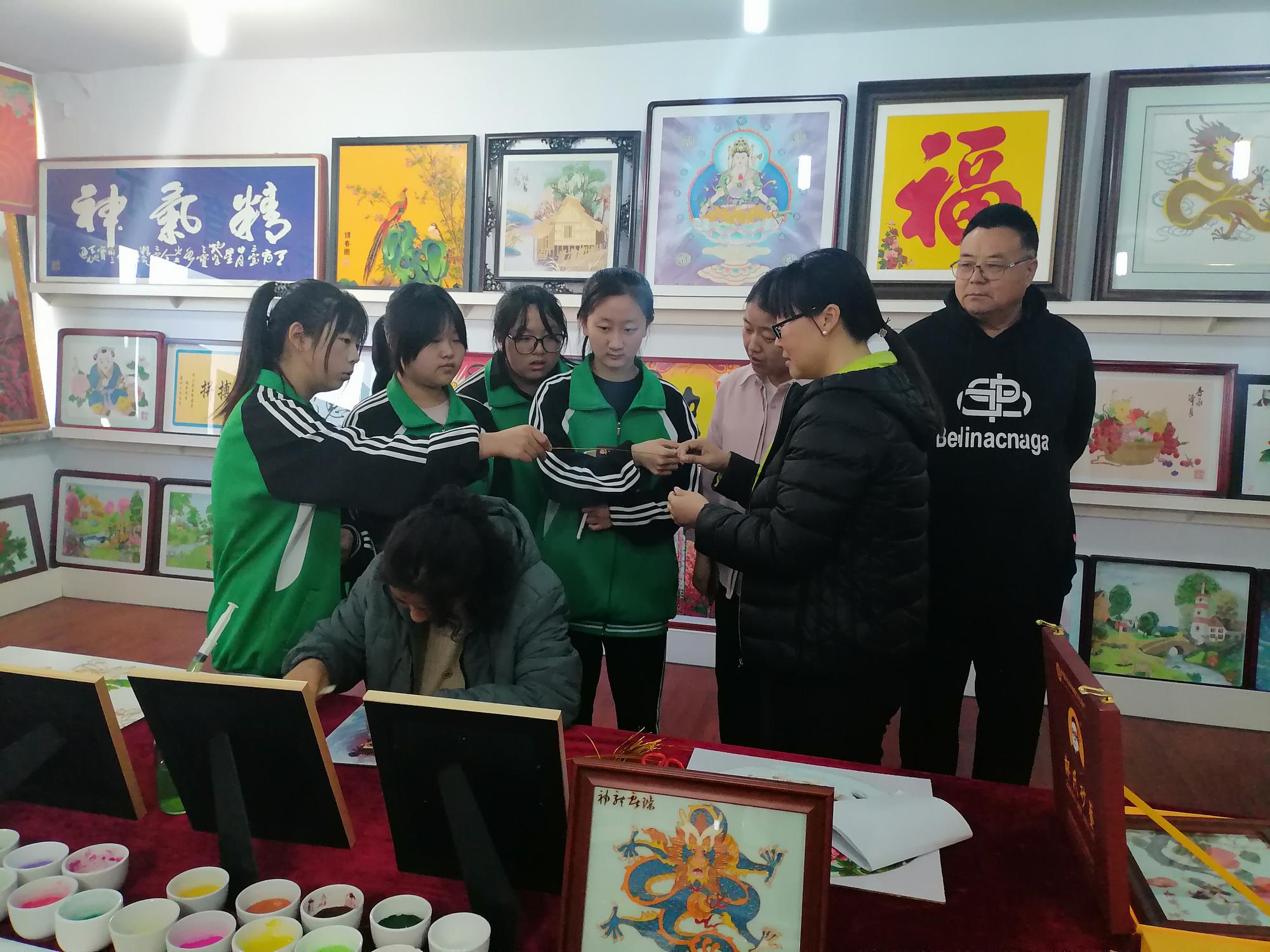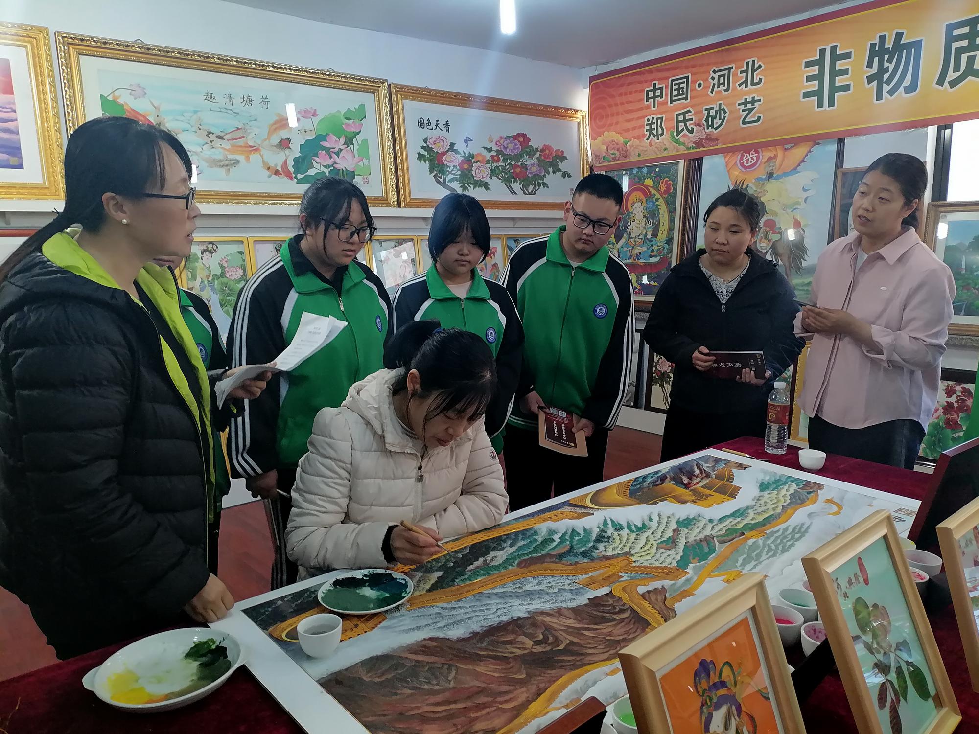 為了更好地向師生們展示砂藝技藝,鄭氏砂藝精心準(zhǔn)備了砂藝制作展演,多位砂藝技師分步展演砂藝制作過程,并由河北省勞動模范、非遺傳承技師王鳳艷詳述掐絲勾線、礦物彩砂分層填充等核心工藝要領(lǐng)。學(xué)生通過全程觀摩砂畫制作工藝流程,切實領(lǐng)悟"毫厘之間見真章"的工匠精神內(nèi)涵。當(dāng)流光溢彩的礦物砂粒與金銀絲線在技師手中逐漸形成美麗的畫面時,展廳內(nèi)頻現(xiàn)此起彼伏的驚嘆聲。師生們對砂藝作品呈現(xiàn)的現(xiàn)實感染力深感震撼,坦言線上了解遠不及實地體驗深刻。帶隊教師劉贏總結(jié)表示:"鄭氏砂藝在非遺傳承中的堅守與創(chuàng)新值得學(xué)習(xí),鼓勵大家傳承技師們精益求精的工匠精神,腳踏實地踐行人生目標(biāo)。"