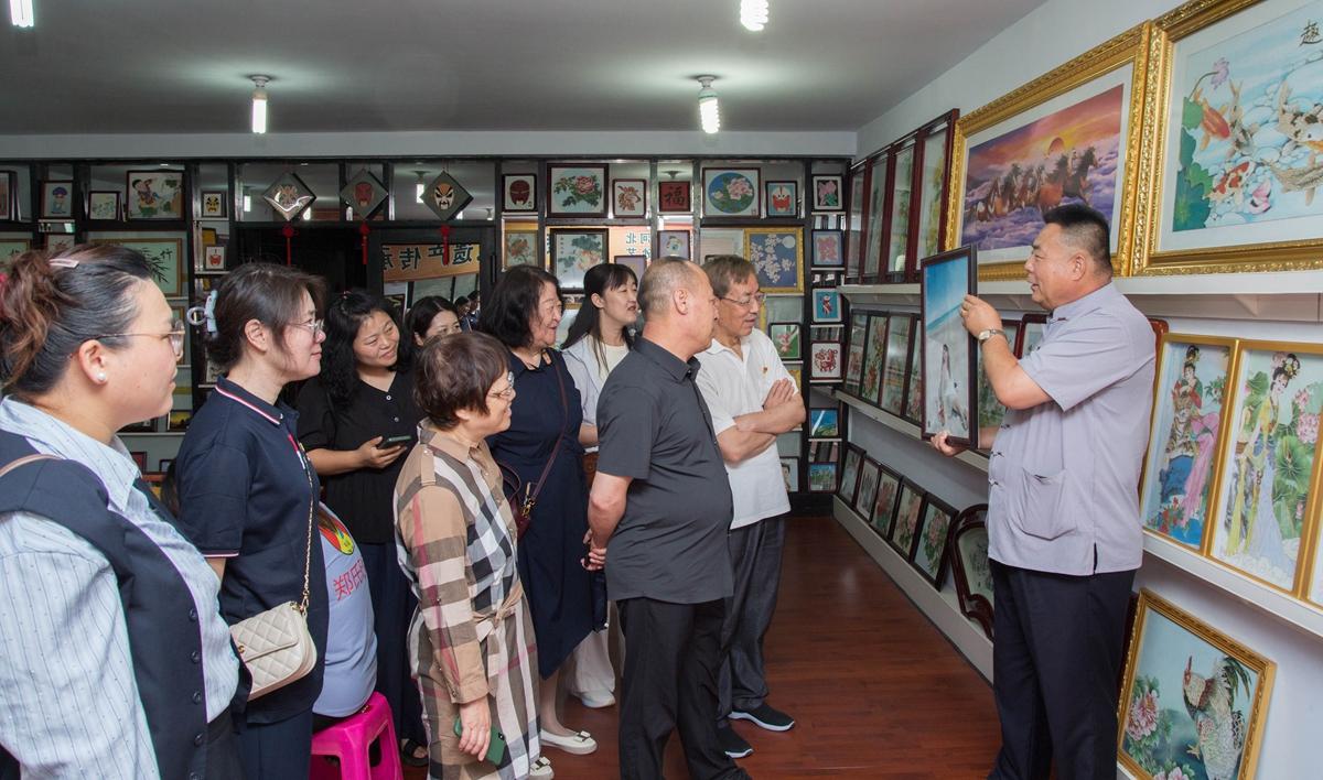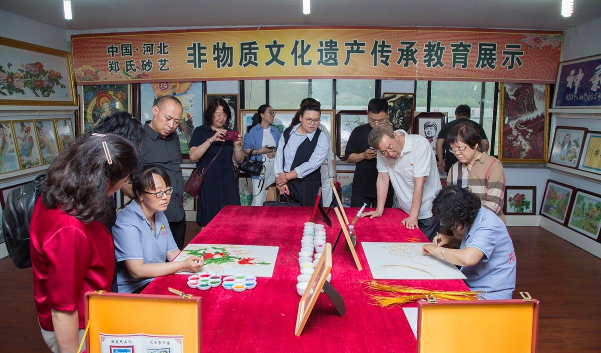 在鄭氏砂藝總經(jīng)理鄭鐵軍的引領(lǐng)下,參觀人員先后參觀了鄭氏砂藝非遺傳承基地和創(chuàng)新研發(fā)車間等工作場(chǎng)所,鄭總詳細(xì)介紹了公司發(fā)展歷程、非遺傳承成果及黨建引領(lǐng)經(jīng)驗(yàn),強(qiáng)調(diào)黨紀(jì)要求如何融入企業(yè)管理黨員參觀了公司展覽館,欣賞了各類砂畫作品,感受非遺魅力。