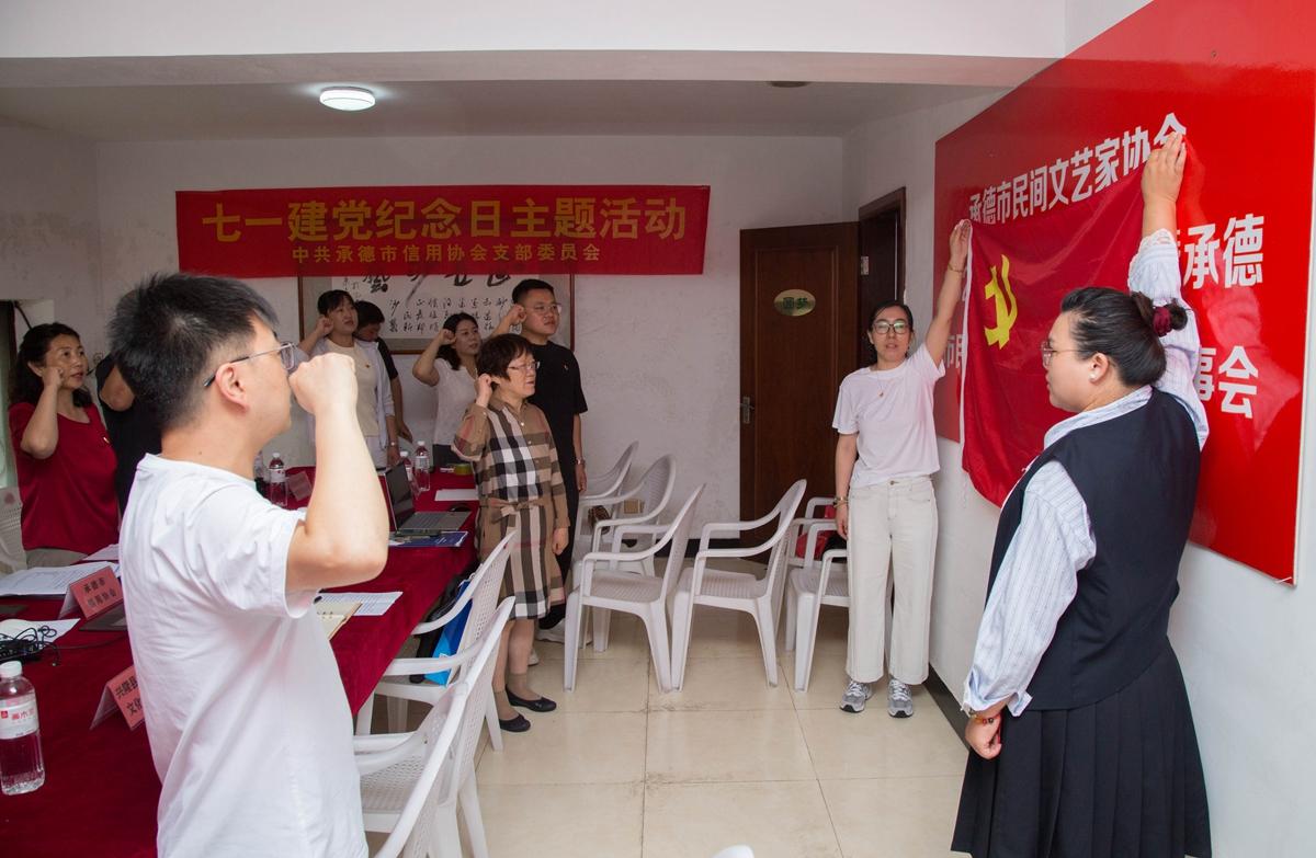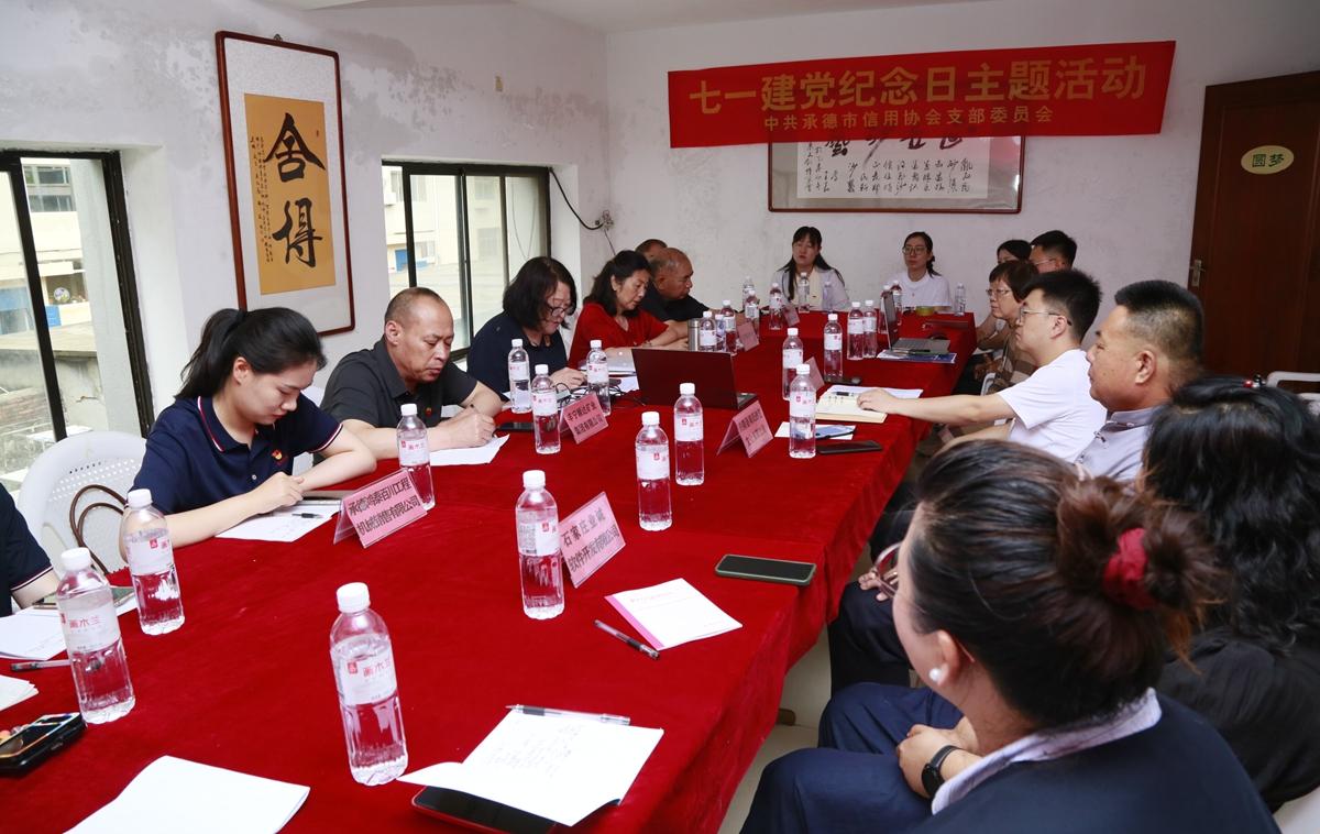 隨后,市信用協(xié)會(huì)黨支部開展了黨建交流環(huán)節(jié)。主持人王一然開場(chǎng)闡述建黨節(jié)意義及活動(dòng)主題,鄭氏砂藝工會(huì)主席張國新分享企業(yè)發(fā)展成果。全體人員集中學(xué)習(xí)了2025年“七一”前夕中央重要會(huì)議精神,聚焦全面從嚴(yán)治黨、高質(zhì)量發(fā)展和誠信建設(shè)。緊接著,承德市信用協(xié)會(huì)黨支部書記高燕領(lǐng)誓,全體黨員重溫入黨誓詞,莊嚴(yán)承諾“為共產(chǎn)主義奮斗終身”。理事單位代表逐一介紹自身情況,豐寧順達(dá)礦業(yè)集團(tuán)副總經(jīng)理武鳳寶、興隆縣工商聯(lián)秘書長丁小虎及信用協(xié)會(huì)顧問初海云分別發(fā)表講話。