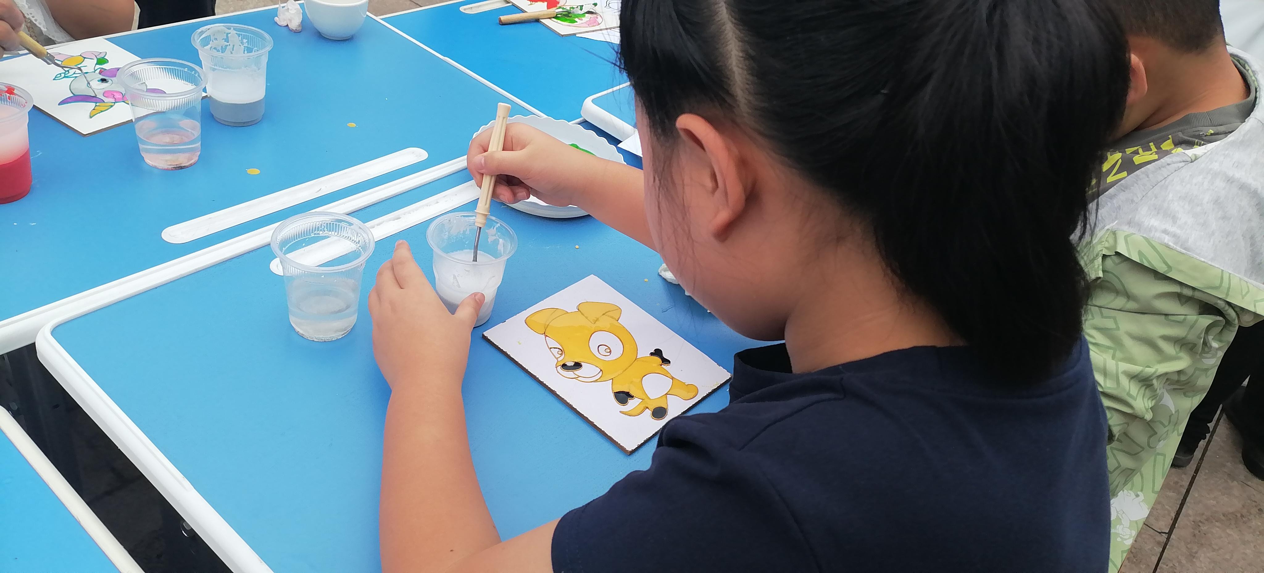 活動現(xiàn)場,鄭氏砂藝的“天然彩砂+金銀絲”工藝成為孩子們的“興趣焦點”。作為興隆縣的省級非遺項目,鄭氏砂藝以天然礦物彩砂為原料,采用金絲銀線勾勒圖案輪廓,再填充彩砂的傳統(tǒng)手法,既保留了鄉(xiāng)土文化特色,又蘊含著非遺技藝的巧思。為讓孩子們輕松參與,技師們特意提前制作了粘好金絲的半成品——一幅幅待填充的砂畫作品,將“最精彩的創(chuàng)作環(huán)節(jié)”留給孩子。“我要給小虎的臉涂綠色!”“我喜歡藍(lán)色的眼睛!”孩子們圍坐桌前,手持作畫小鏟,認(rèn)真地將色彩砂石填入金絲框架,同時互相交流“配色秘訣”,現(xiàn)場充滿了童真與熱鬧。