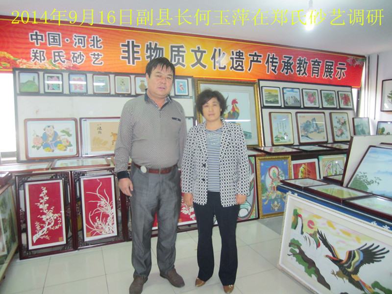 2014年9月16日,副縣長(zhǎng)何玉萍來到鄭氏砂藝公司就我縣文化產(chǎn)業(yè)發(fā)展進(jìn)行考察調(diào)研。何縣長(zhǎng)參觀了鄭氏砂藝研發(fā)室、展廳和公司企業(yè)文化墻,聽取了公司總經(jīng)理鄭鐵軍的工作匯報(bào)。何縣長(zhǎng)對(duì)鄭氏砂藝近幾年來所取得的成績(jī)給予充分肯定,并希望鄭氏砂藝一定要瞄準(zhǔn)國(guó)內(nèi)外兩個(gè)市場(chǎng),抓住生產(chǎn)研發(fā)與市場(chǎng)銷售兩個(gè)主要環(huán)節(jié),搞好科技創(chuàng)新,千方百計(jì)提升產(chǎn)品質(zhì)量,帶動(dòng)我縣文化產(chǎn)業(yè)的繁榮發(fā)展。